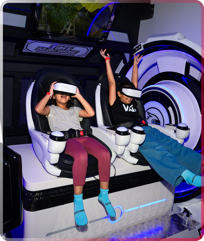 Pick from our thrilling VR modes and step into worlds full of action, teamwork, and birthday fun.